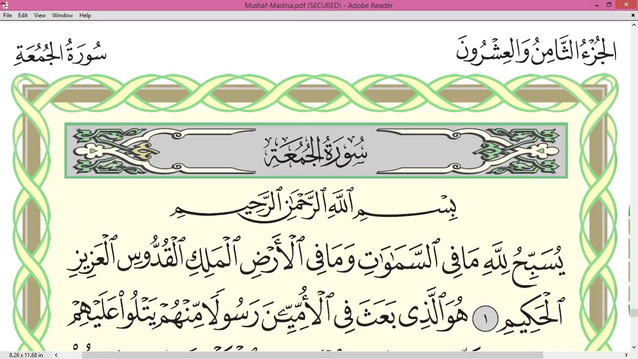 Quran With Tajwid Surah 62 القرآن سورۃ الجمعة Al Jumu A Pdf