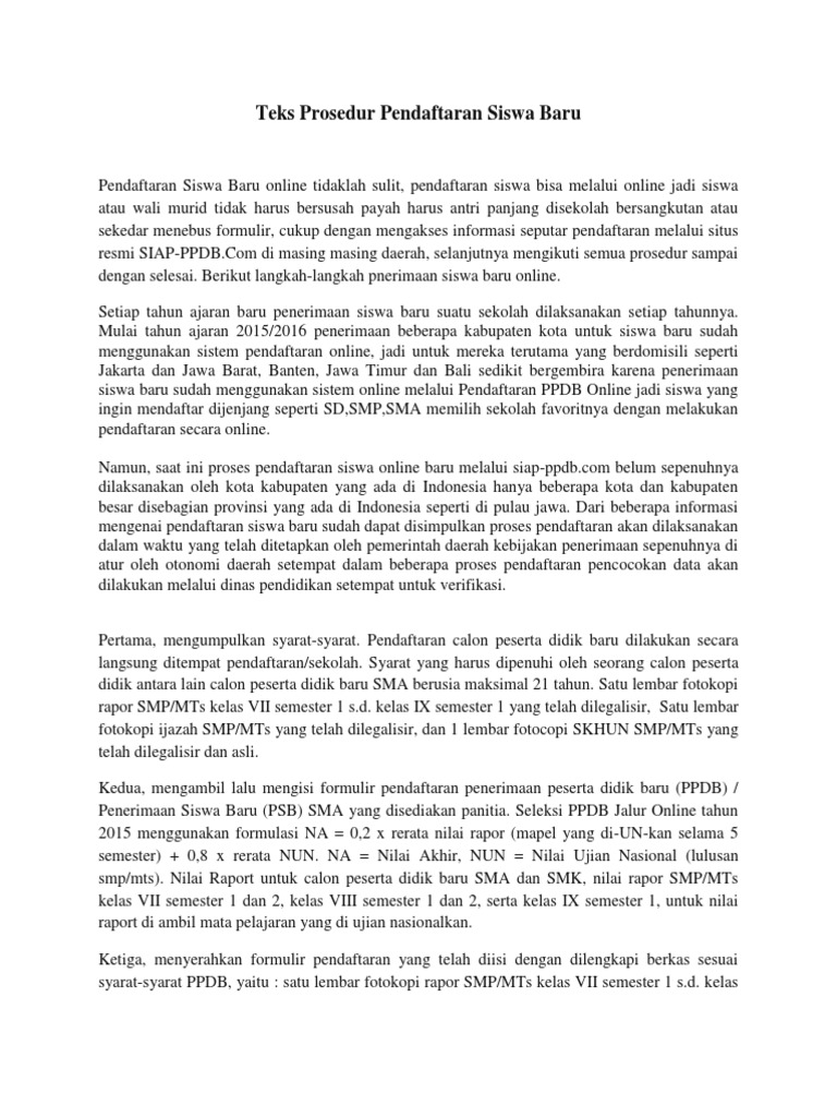 Teks Prosedur Pendaftaran Siswa Baru Pdf