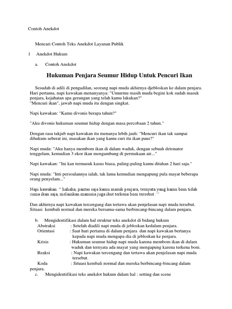 Teks Anekdot Tentang Hukum - Anekdot Tentang HukumAbstraksi Orientasi Krisis Reaksi koda urutan bagian-bagian anekdot. Teks tersebut biasanya juga memuat.