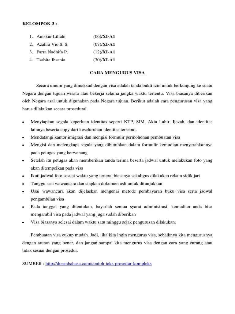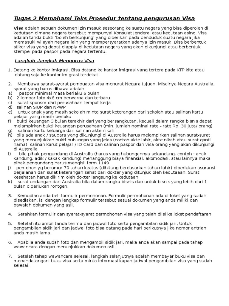 Bahasa Indonesia Teks Prosedur Cara Mengurus Visa 13 08 2017