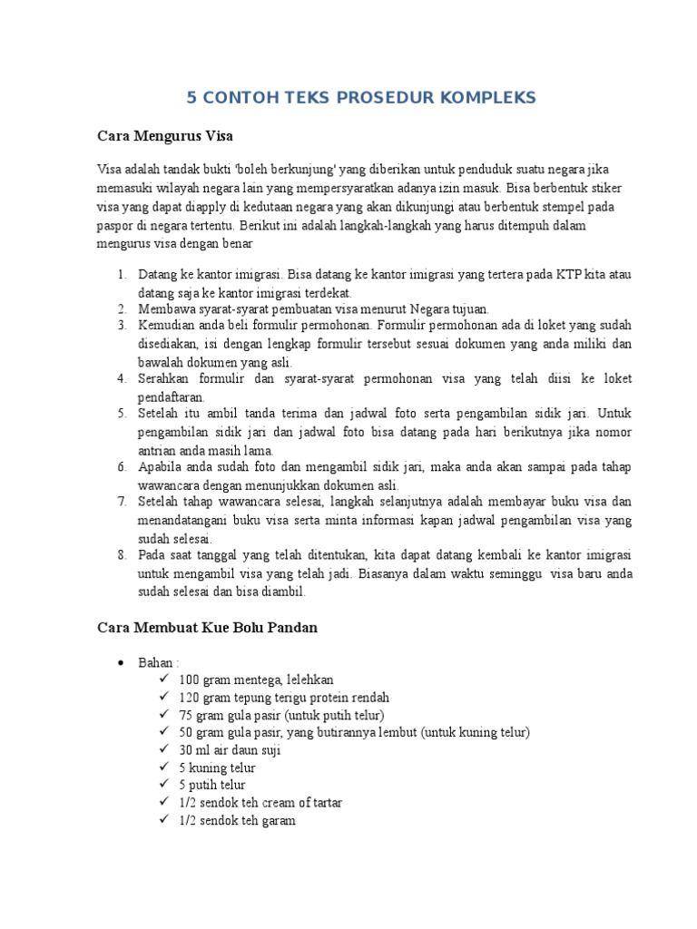 Pada dasarnya sekitar 2-4 minggu proses pembuatan visa selesai. Contoh Teks Prosedur Sederhana Membuat Minuman Kopi Susu. Kedua lengkapilah persyaratan pembuatan visa menurut negara yang dituju.