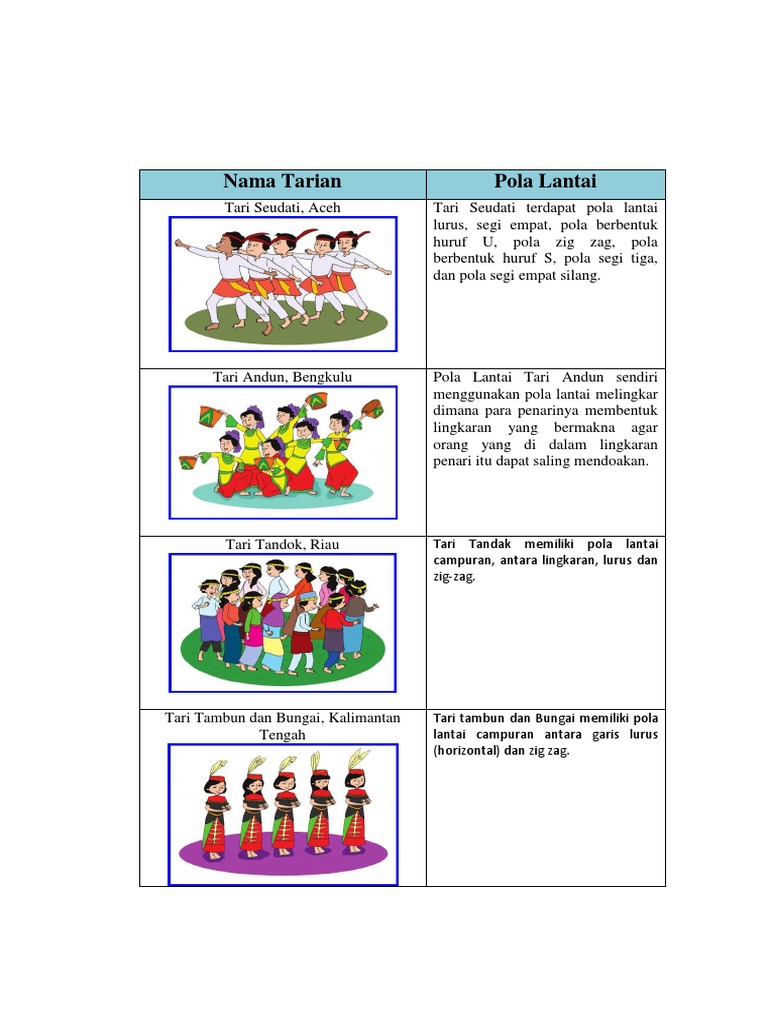 Nama Tarian Pola Lantai Tari Seudati Andun Tandak Tambun dan Bungai Pembahasan kunci jawaban soal tema 2 kelas 6 SDMI di buku paket tematik halaman 34 sampai. Tari Andun Pola Lantai. Tari Andun dari Bengkulu Pola lantai yang digunakan.