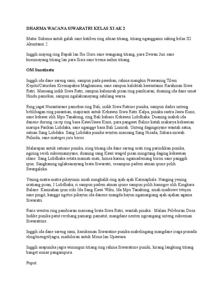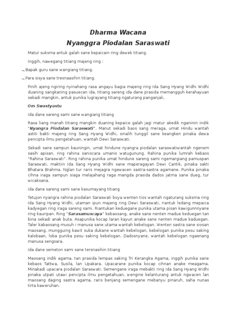 Contoh dharma wacana bahasa bali. Admin blog Berbagai Teks Penting 2019 juga mengumpulkan gambar-gambar lainnya terkait contoh teks dharma wacana bahasa bali tentang pawiwahan dibawah ini. Dharma Wacana NYANGGRA RAHINA NYEPI Inggih suksma antuk galah sane katiba ring sikian titiang majeng ring pangenter acara sadurung titiang jagi ngaturang pidarta sane.