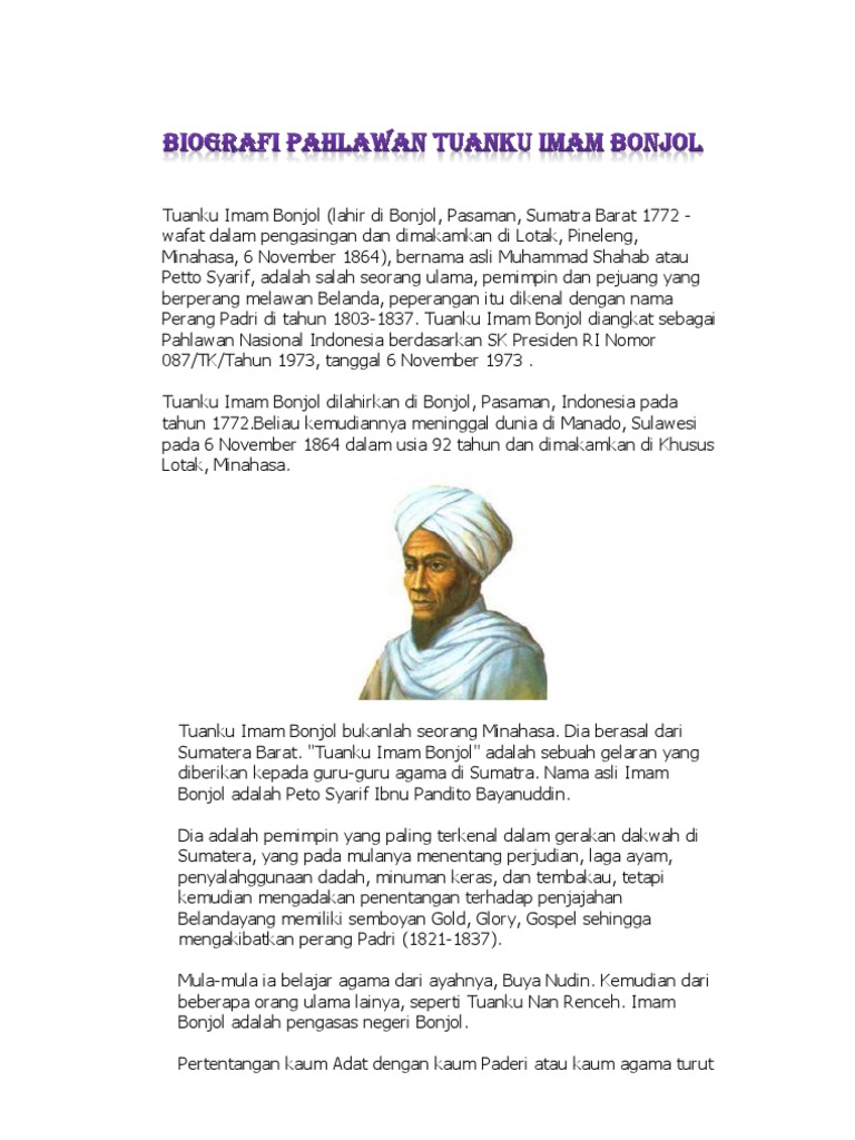 Biografi Pahlawan Tuanku Imam Bonjol Pdf