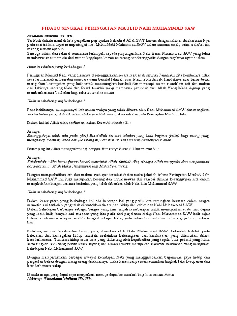 Pidato Singkat Peringatan Maulid Nabi Muhammad Saw Pdf
